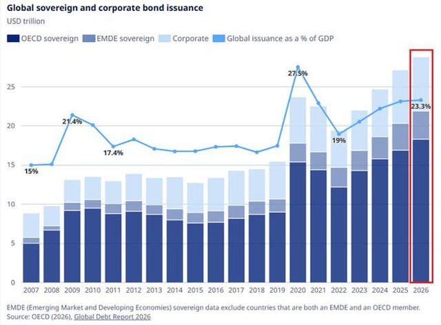 That would mark the 4th consecutive annual increase and would also DOUBLE the average pre-pandemic levels. Corporate debt issuance is set to surge to a record $6.9 trillion, while government debt issuance is expected to rise to $21.9 trillion, also an all-time high. By comparison, governments and corporates issued $23.7 trillion of debt in 2020,…